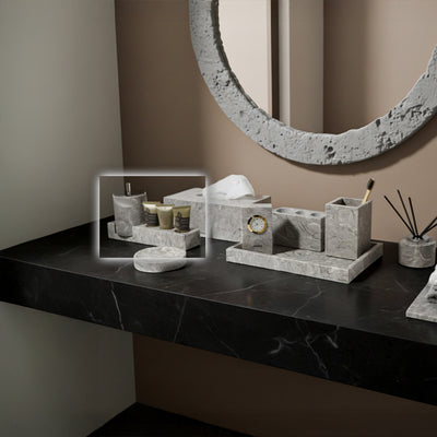 Bawang Flower Marble Toothbrush Holder Set (Cotton Stick Canister Style - Silver Lid) TMC892-1+CBJ892-6