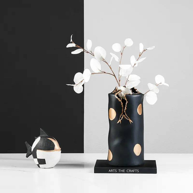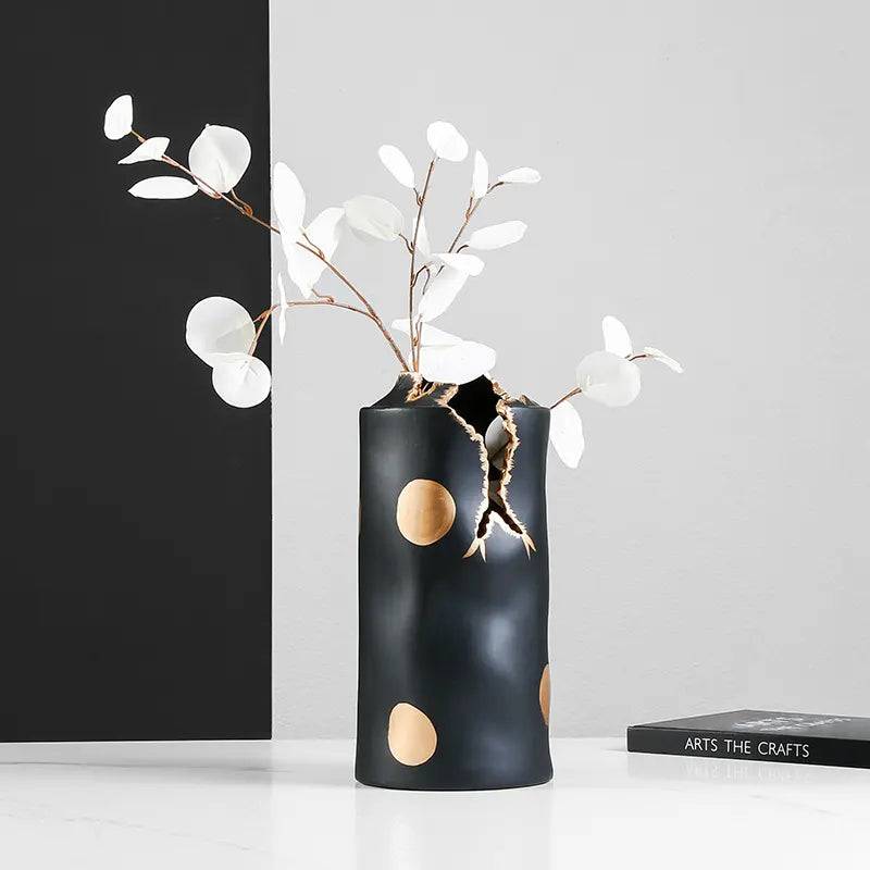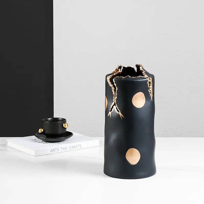 Black & Gold Ceramic Vase With Crack Detail Fa-D22062