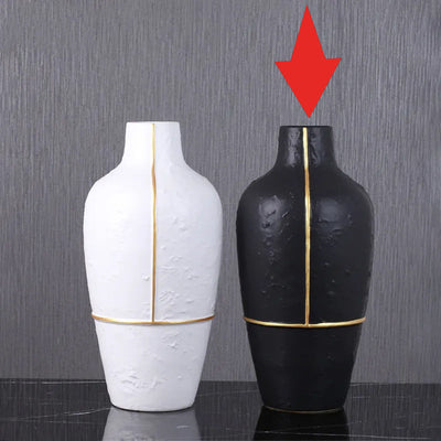 Elevate your home décor with our exquisite Black Vase adorned with delicate Gold Thread. Crafted from premium ceramic, this vase exudes luxury and sophistication. Stand out with this exclusive piece, perfect for displaying your favorite blooms. Make a statement and add a touch of elegance to any room.