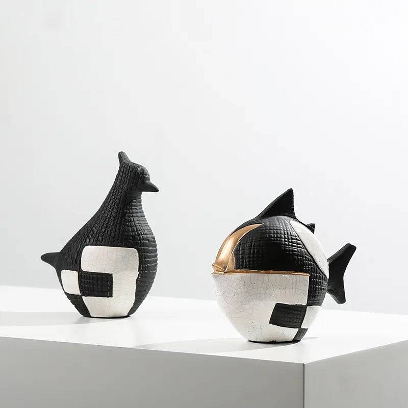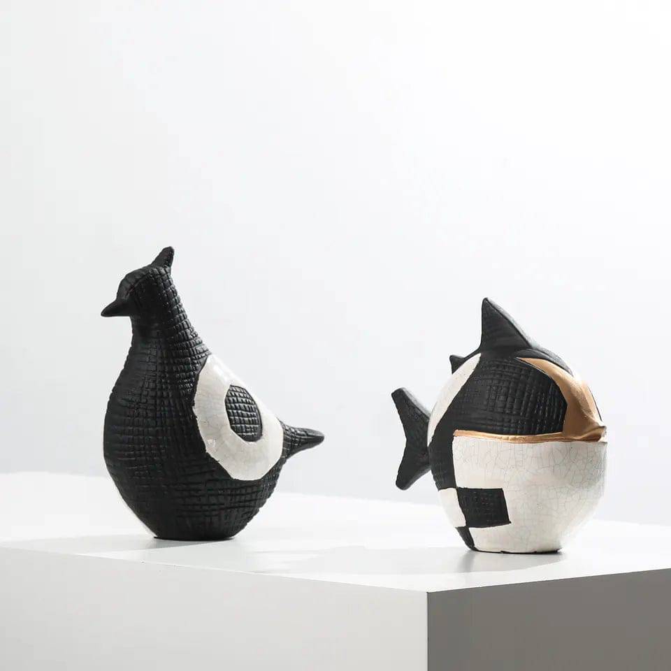 Black, White & Gold Ceramic Puffer Fish Fa-D22025