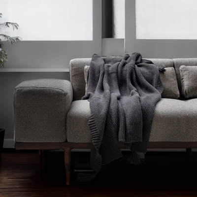 Get cozy with our Grey blanket! Perfect for snuggling up on chilly nights. Order now. (No need to count sheep. This blanket brings the comfort!)