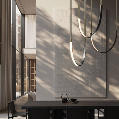 "Light up your space with style and charm with our Set of 3x Catenary Leather Curve Pendant Lamps! These unique lamps feature a sleek leather curve design that will add a touch of elegance to any room. Perfect for creating a cozy and inviting atmosphere.