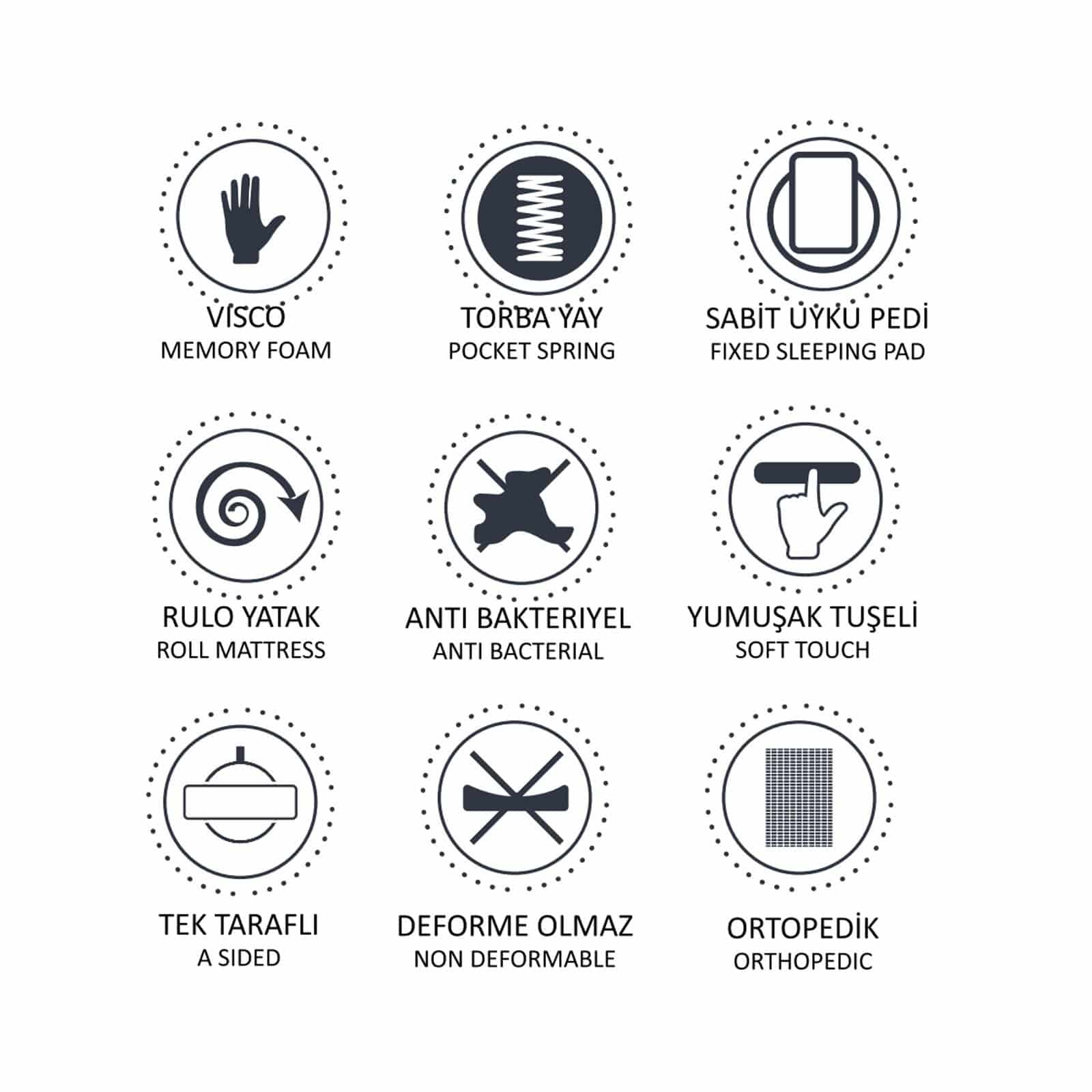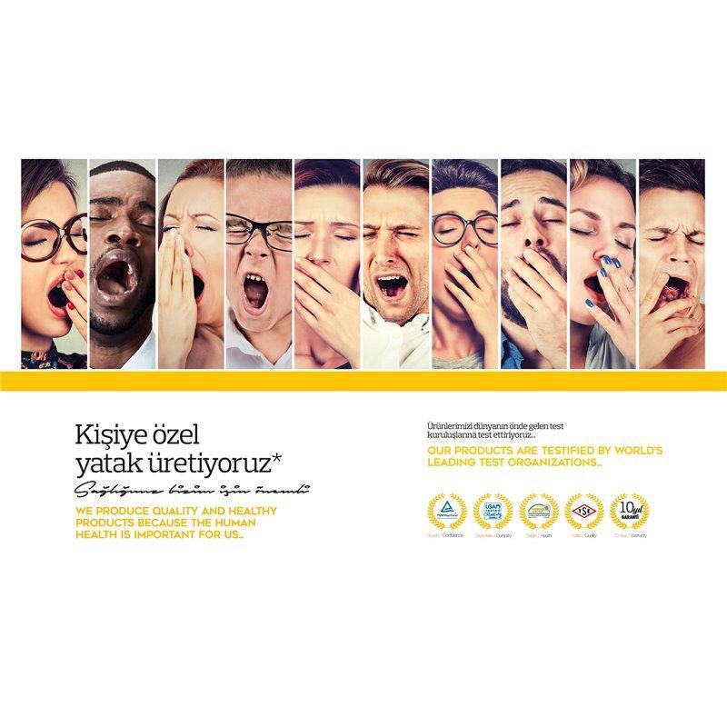 A unique mattress with an application on the fabric to releive stress during your sleep. The special foam padding and the volumetric structure and the viscose fabric used on the surface of the bed create an ergonomic surface while providing the ideal sleeping temperature with dehumidification. The M2 317 state-of-the-art pocket spring system provides extra comfort, while the thicker pad on the upper surface of the bed provides waist, neck and joint support.