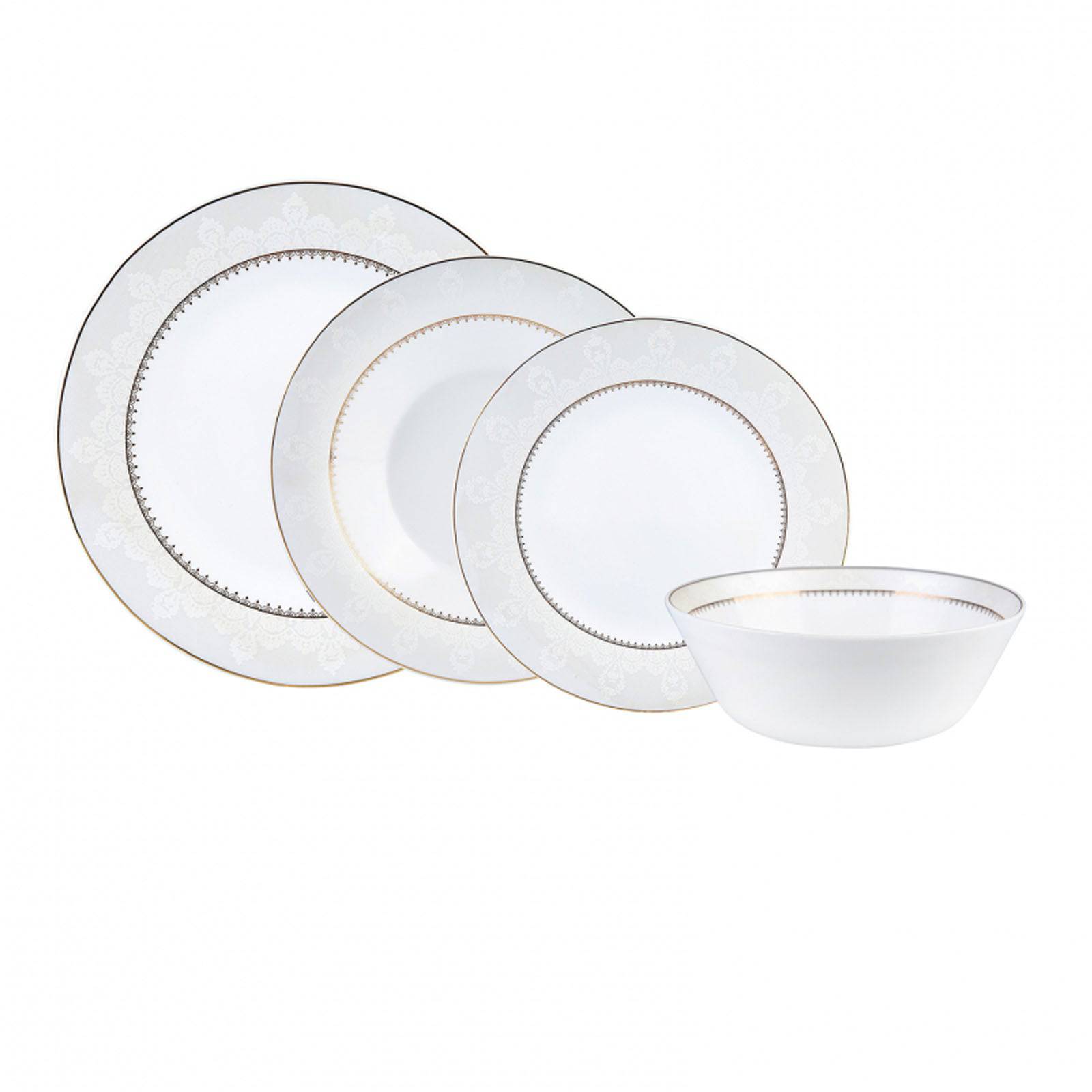 Karaca Platinum 6 Person Dinner Set Set Content 6 Soup Bowls 6 Food Plates 6 Service Dishes 6 pieces of Cake Plate |