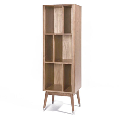 The Design of this Classic Cabinet sits atop a four sided solid wood base with four extended stiletto legs. The legs feature a slight flair and are tipped with stainless steel caps. 3 horizontal shelves create the flexible storage platform for 3 vertical shelves.The interior and exterior spaces of the body are carefully crafted of real ash Wood veneer and carefully sealed with multiple coats of lustrous finish. The front edges are ever so slightly rounded imbuing a period correct retro modern vibe. Features quality hand craftsmanship worthy of introducing into your collection. The solid Ash legs as well as the real Ash wood veneer body are sealed & polished to a rich natural luster.