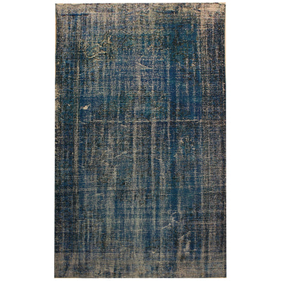 This over-dyed Turkish vintage rug is a celebration of both past and present. Created using a technique employed to breathe new life into older hand-knotted rugs, the colors are first neutralized before the rug is over-dyed with its entirely new hue. The original pattern can still be traced, a tribute to the skilled weavers who created it. The quality of the rug shines through, yet the recycled rug now fits perfectly into a contemporary interior design. Consider it not just as a rug, but as a unique piece of contemporary art.