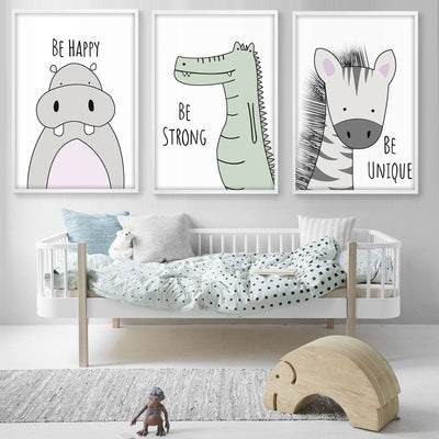 Be Happy Be Strong Be Unique Set Of 3 Framed Graphic Art Print Soapr0008
