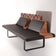 Plywood frame with walnut veneer finish, microfiber leather seat, cotton fabric background, and powder-coated steel legs |