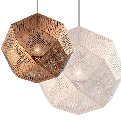 Inspired by the beauty and logic of mathematics, This Pendant is a delicate, airy geode. Each of the panels that comprise the shade are digitally etched with a highly detailed pattern that creates an intricate play of warm light. The ingenuity and beauty of the design are contrasted with the strong, stainless steel used in the construction, for a truly stunning end result.