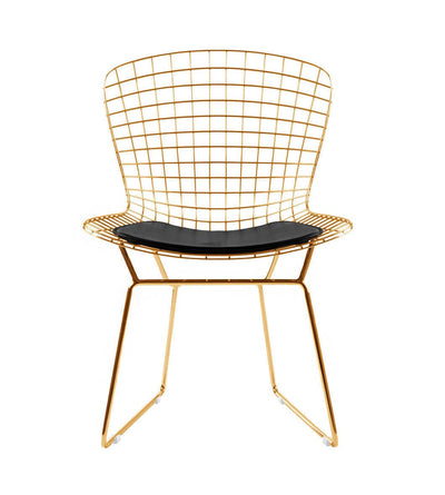 The Wire Dining Chair in a luxurious golden hue offers a perfect blend of contemporary design and elegance. Its minimalist wireframe structure provides durability and a lightweight feel, making it an ideal choice for sophisticated dining areas seeking a subtle yet striking statement.