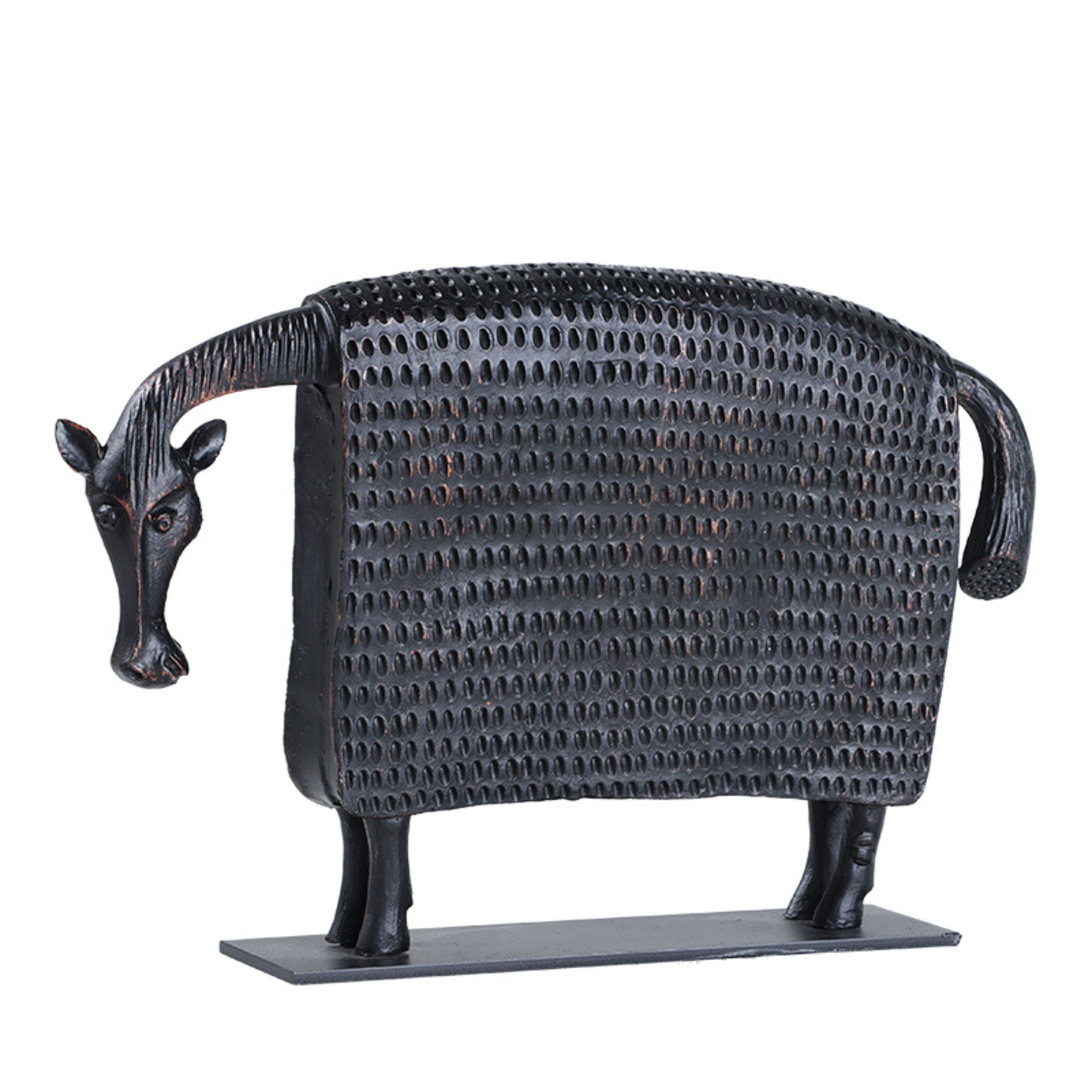 Experience the charm and beauty of our COW FIGURINE in a sleek black design. Perfect for any animal lover, this figurine will add a touch of elegance to any room. Handcrafted with attention to detail, it's the perfect addition to your home decor.