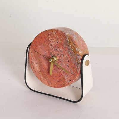 Tick tock, don't miss a beat with our Desktop Clock. The Red Stone and Beige Leather add a touch of sophistication, providing a stylish addition to any desktop. Keep track of time in style with this unique and functional clock.