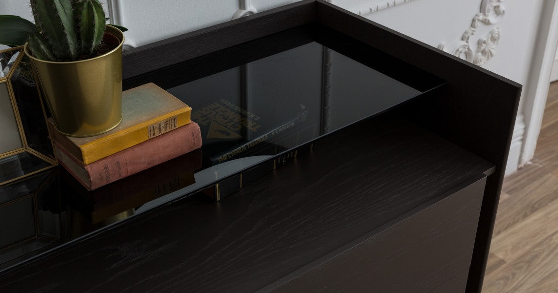 MDF and Ash Wood veneer -GLASS TOP |