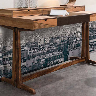 Add a Touch of mid century modern theme with this iconic desk This is a simple box design desk that provides a spacious work top and storage below for your laptop, pencil box and whatever else you need to stash behind them.