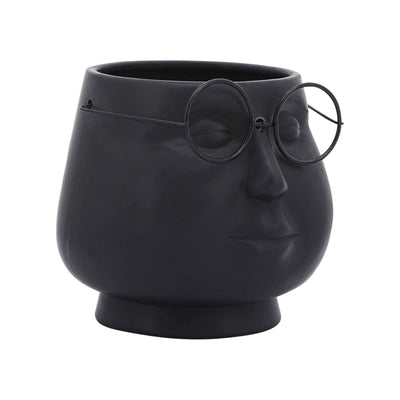 Face With Glasses Porcelain Planter 17 Cm - Black 16715-01