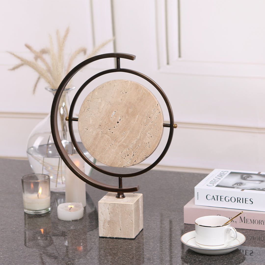 Get ready to globe-trot with this stunning marble sculpture! Decorate your home or office with this unique piece that will add a touch of elegance and sophistication to any space. Perfect for the world traveler or anyone with a love for art.