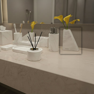 Jazz White Marble Trapezoidal Flower Arrangement (High Style) VSB880