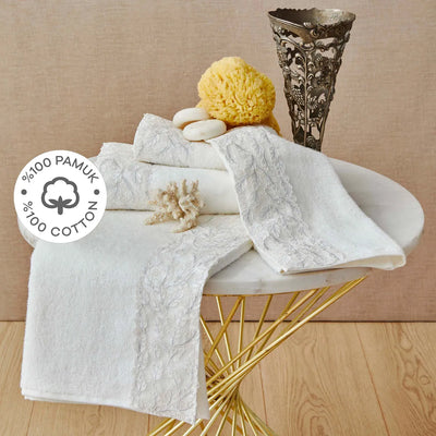 Karaca Home Plume Silver Offwhite 100% Cotton French Lace Towel Set