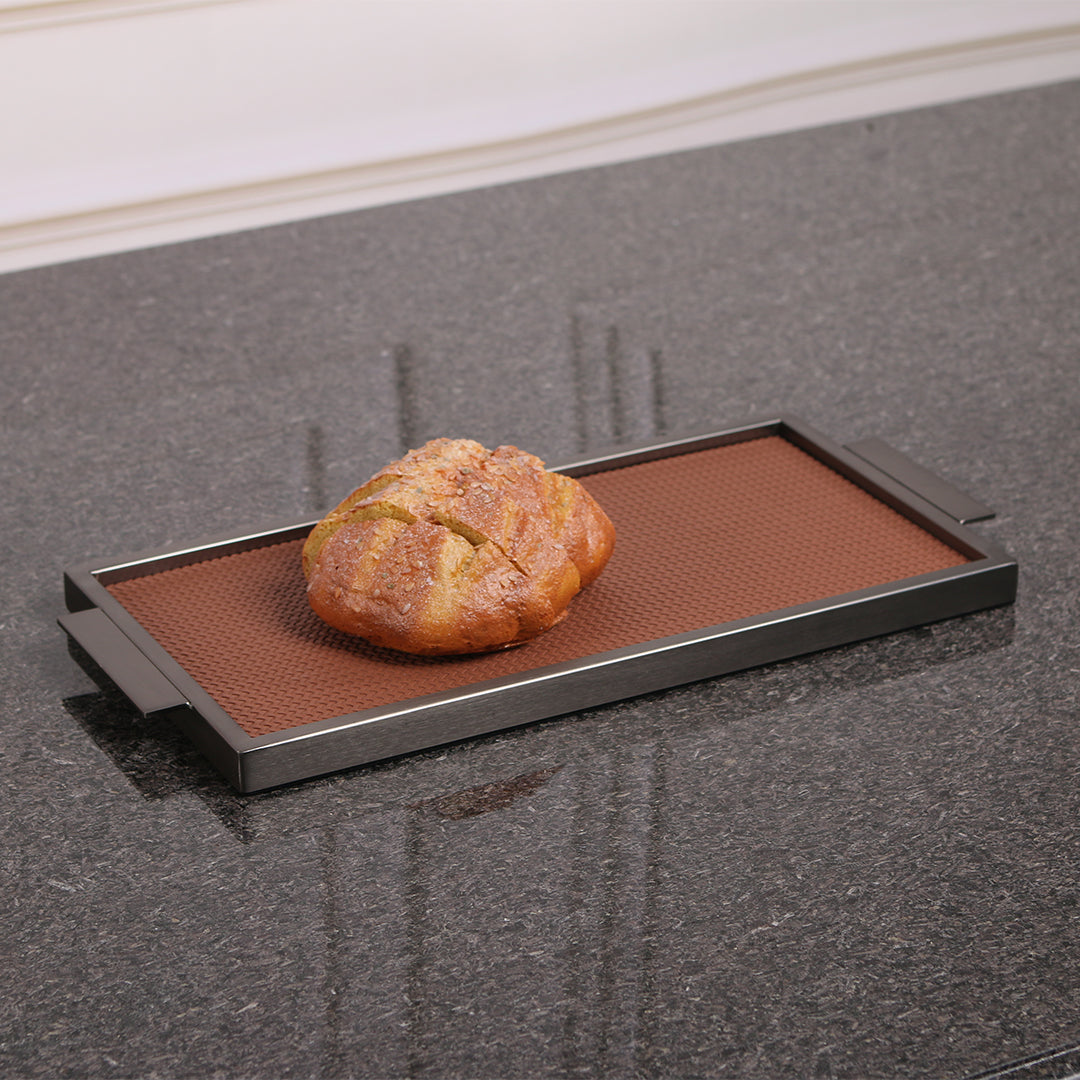 Get ready to elevate your home decor. Made of high-quality leather and metal, this tray is not only stylish but also durable. Perfect for serving or displaying items, it's a must-have for any modern home.