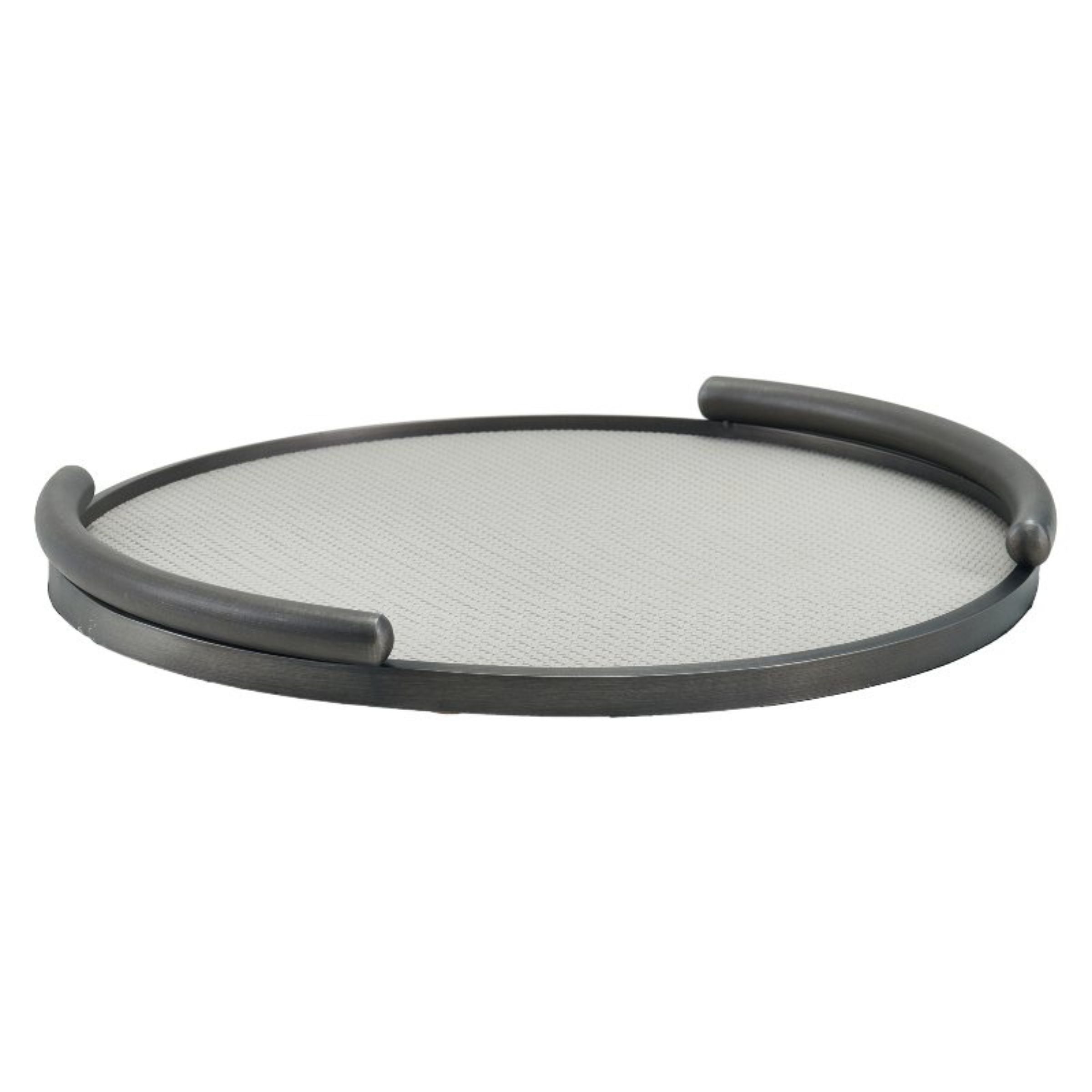 LIGHT GREY & BRUSHED METAL ROUND LEATHER TRAY DD210942A