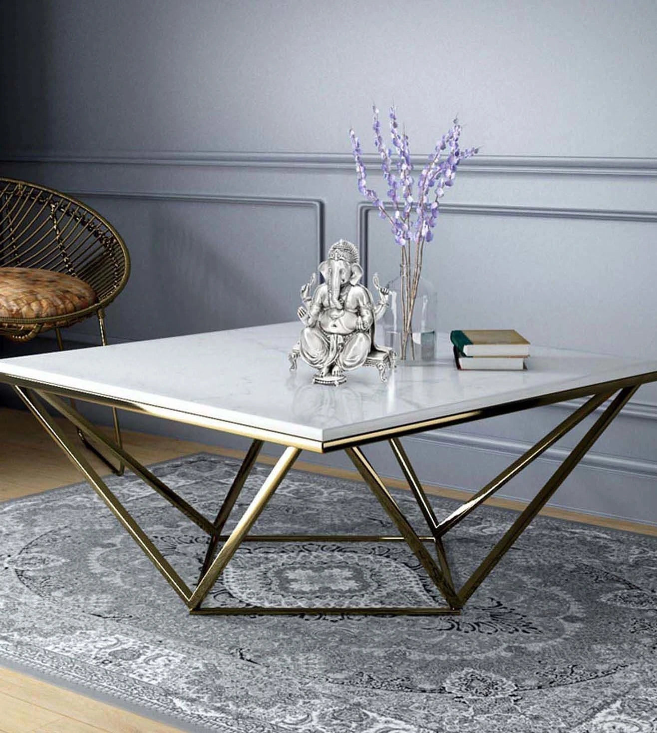 This table has a modern look with its metal armed frame, Made of Stainless Steel and natural marble top. it can certainly be considered a statement piece for anyone's home.