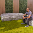 This bench isn't just a seat, it's a sculptural work of art! Crafted from natural stone and perfect for commuting between indoors and outdoors, the bench is a one-of-a-kind addition to your garden or patio. Chisel away the ordinary and make your outdoor space shine!