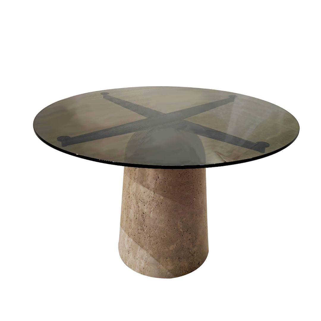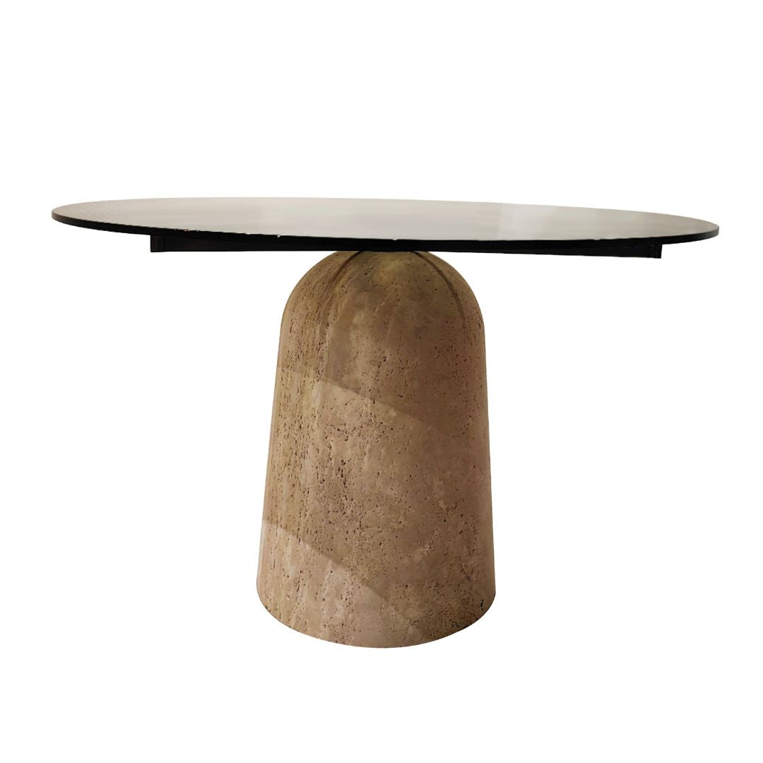 Panorama Glass/Travertine 120cm Dining Table - EB10DT