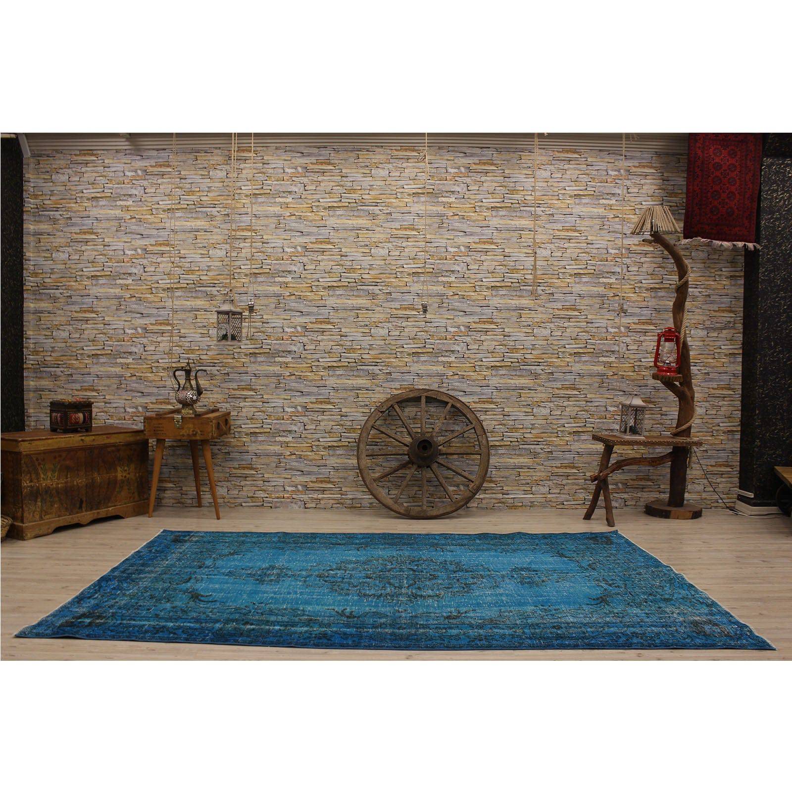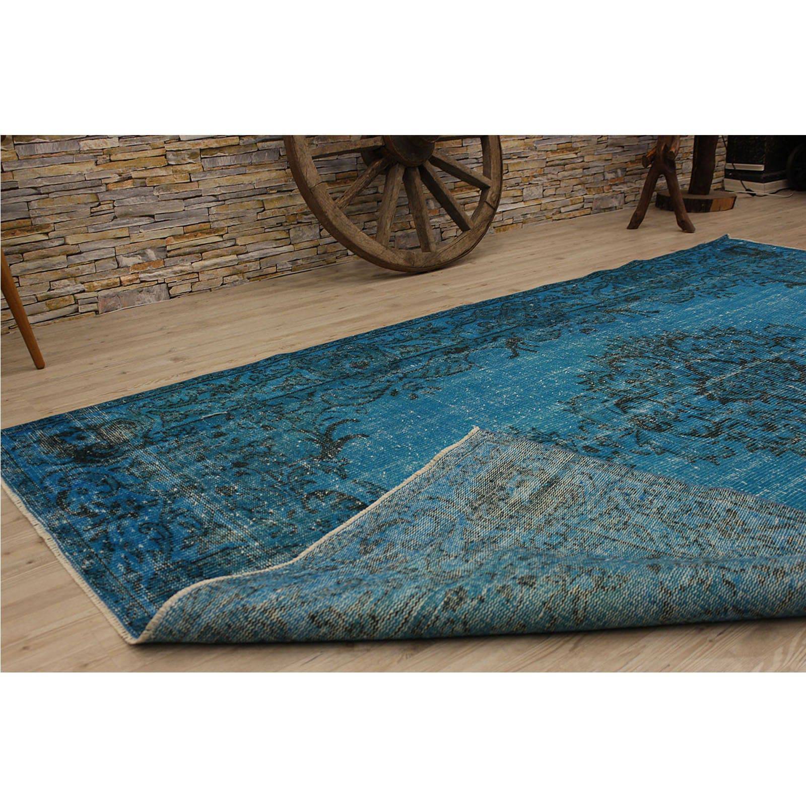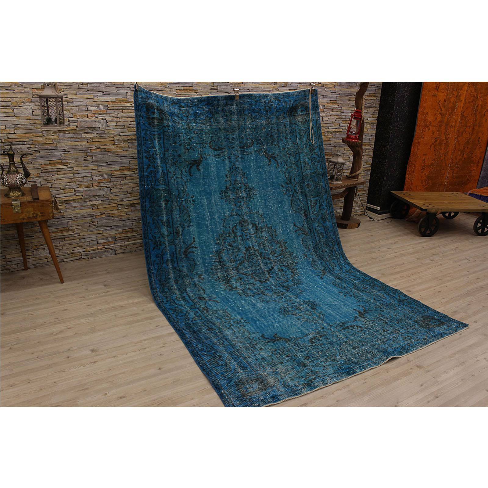 This over-dyed Turkish vintage rug is a celebration of both past and present. Created using a technique employed to breathe new life into older hand-knotted rugs, the colors are first neutralized before the rug is over-dyed with its entirely new hue. The original pattern can still be traced, a tribute to the skilled weavers who created it. The quality of the rug shines through, yet the recycled rug now fits perfectly into a contemporary interior design. Consider it not just as a rug, but as a unique piece of contemporary art.