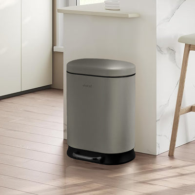 This 30-liter Runway shape trash can features a soft-close function for smooth and quiet lid closure. Its sleek and unique design adds an element of style to any room. Experience the convenience and elegance of this trash can in your home.