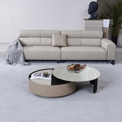Saddle Leather And Marble Coffee Table JK-D108