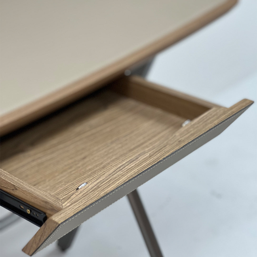 Add some luxury to your workspace with our Microfiber leather Desk JK-J13. Made with high-quality leather, this desk is both stylish and functional. Upgrade your office game with this sleek addition!