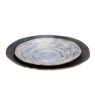 Set Of 2 Decorative Metal Swirl Tray - Blue/Multi 15559