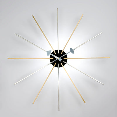 This Replica clock adds a twist to the idea of 'watching the clock'. it is one of a number of clocks designed in the '50s, all of them distinctive, often futuristic, and always fun. Made from brass and Maple, it has a quartz mechanism.