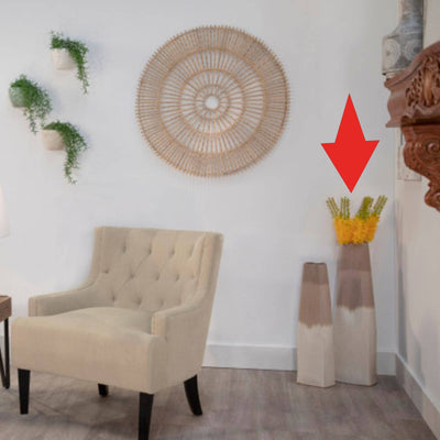 Add a touch of unique style to your home with our Two Tone Vase in Beige! Featuring a playful twist on traditional vases, this cylindrical piece adds a pop of personality to any room. Its beige color and two-tone design make it a versatile decor piece that effortlessly ties in with your existing aesthetic. Perfect for adding a touch of quirkiness to your space!
