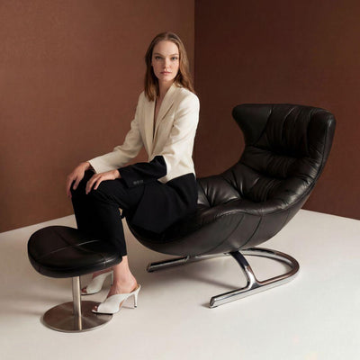 Vexel Black Lounge Chair With Ottoman F-2028A