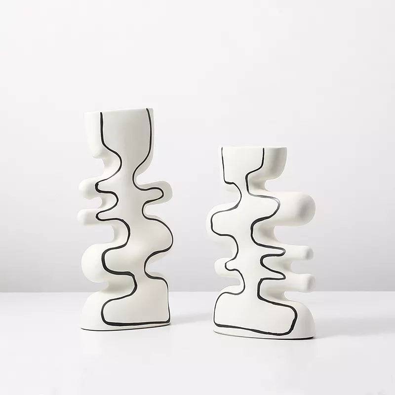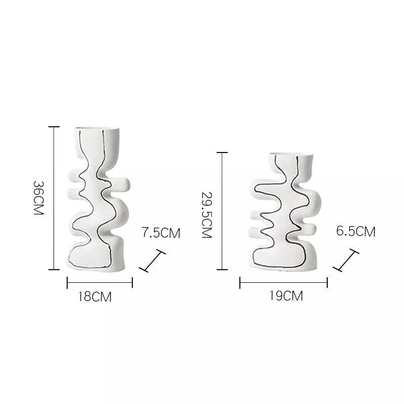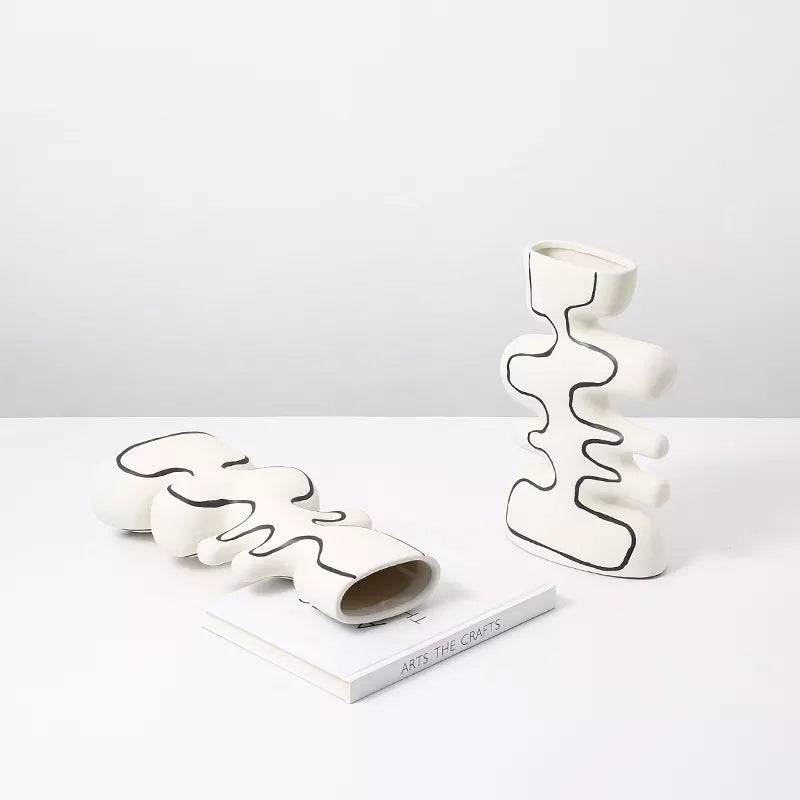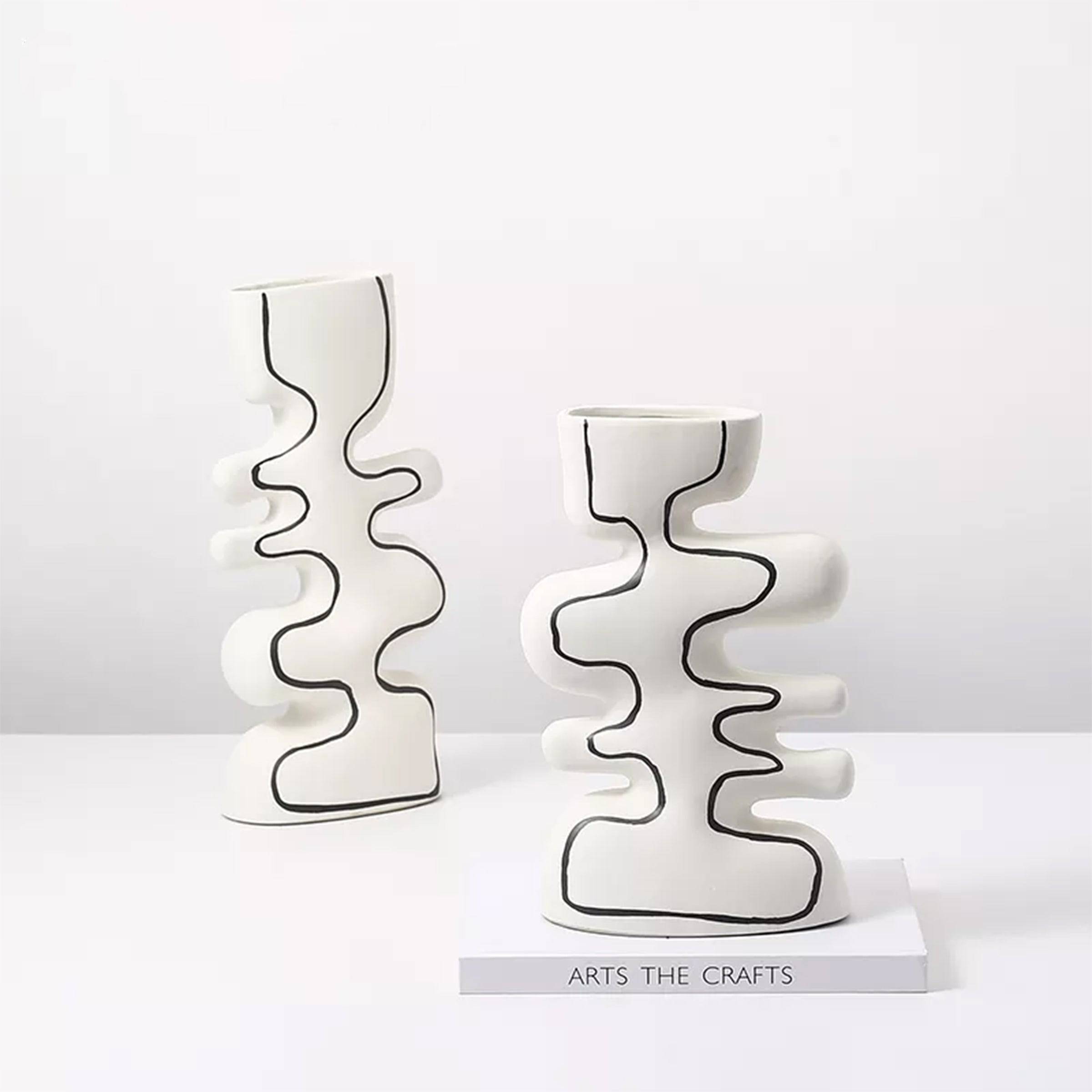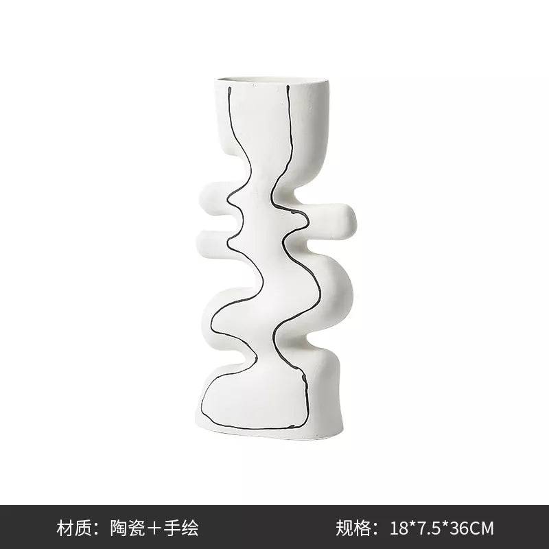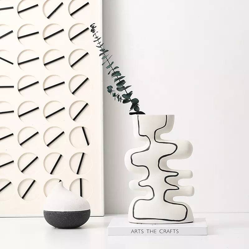This vase is a one-of-a-kind addition to any home decor. With its unique hand-painted black detail on a white ceramic background, it adds an element of style and charm. Perfect for displaying your favorite flowers or as a standalone piece, it's sure to make a statement in any room.