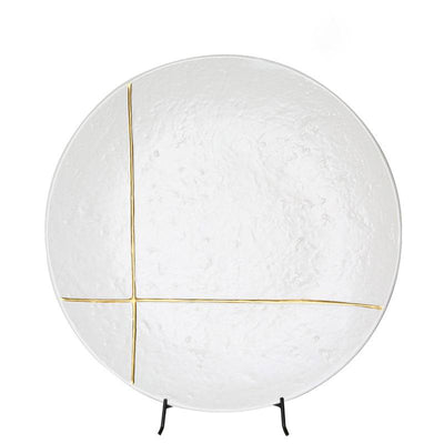 Spice up your dining table with our White Plate With Gold Thread! (Regrettable pun intended.) This elegant plate adds a touch of sophistication to any meal, while the delicate gold thread detailing adds a subtle pop of glamour. Impress your guests with this unique addition to your dinnerware collection.